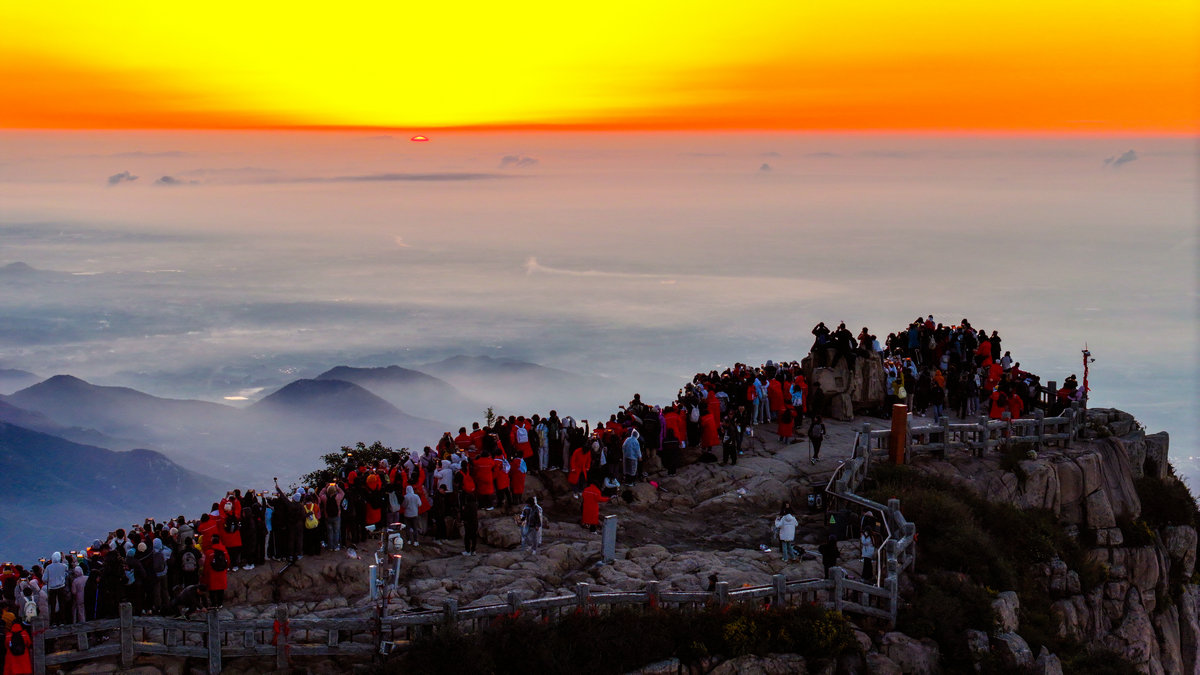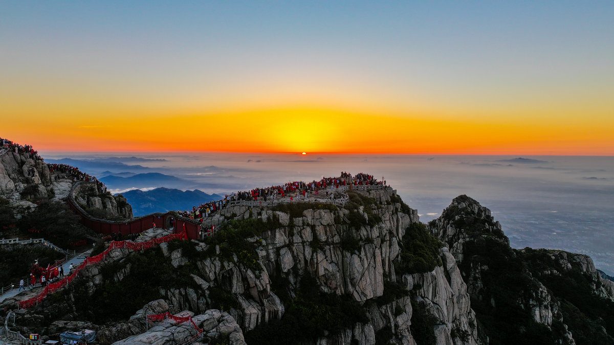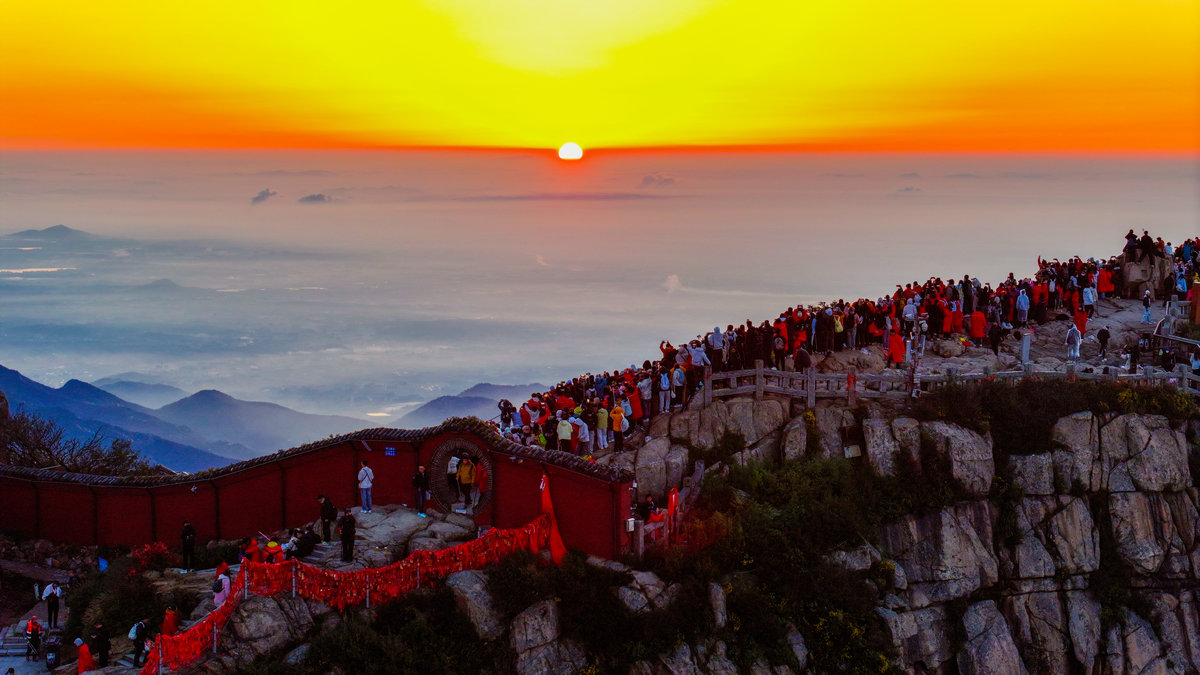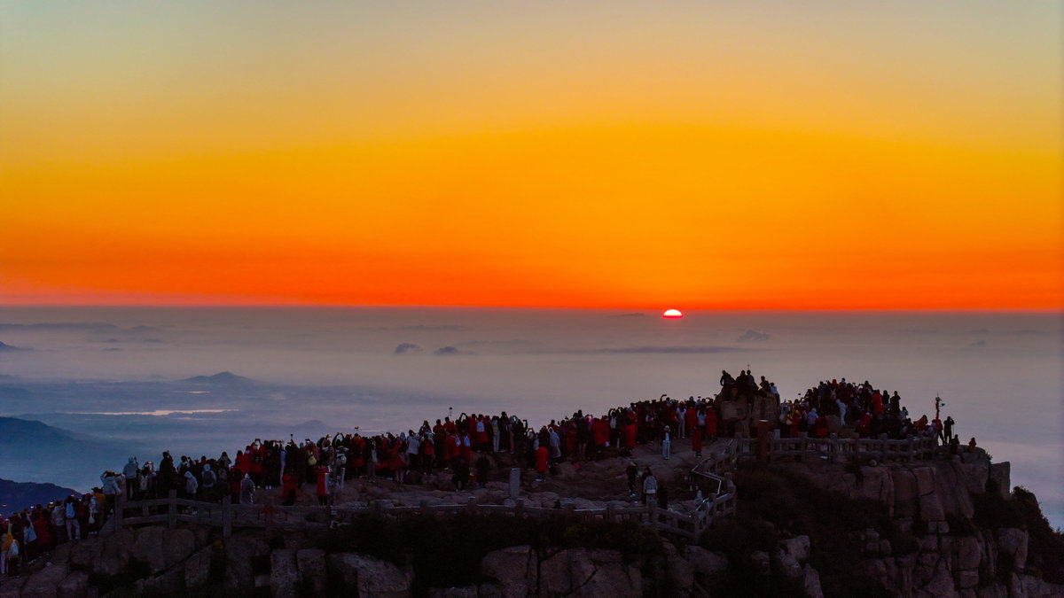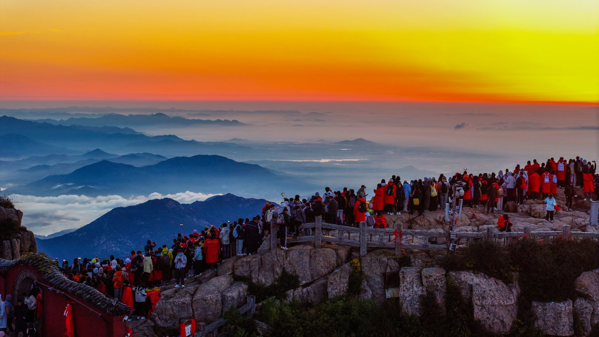 这或许就是泰山最动人的秘密。她让每个攀登者都成为晨光中的朝圣者。那轮每天都会升起的太阳,之所以值得千万人彻夜奔赴,不仅仅因为景色的壮美,更因为等待本身就是一种仪式——在漫长的黑夜中坚持,在刺骨的寒风中相信,在筋疲力尽时依然选择向上攀登。泰山日出从来不只是自然奇观,它是人类用脚步书写的信念之诗。(张子秋/图文)