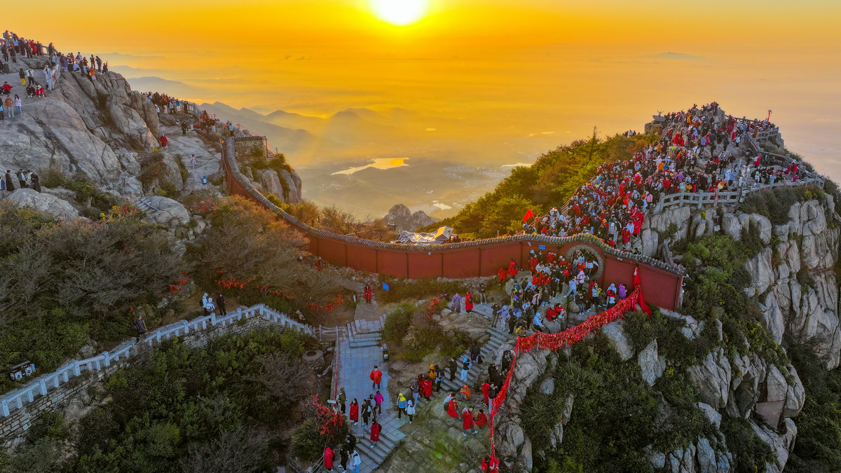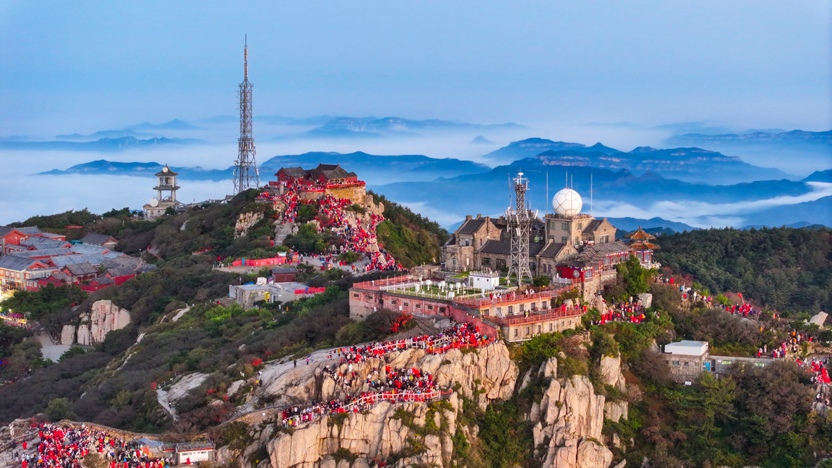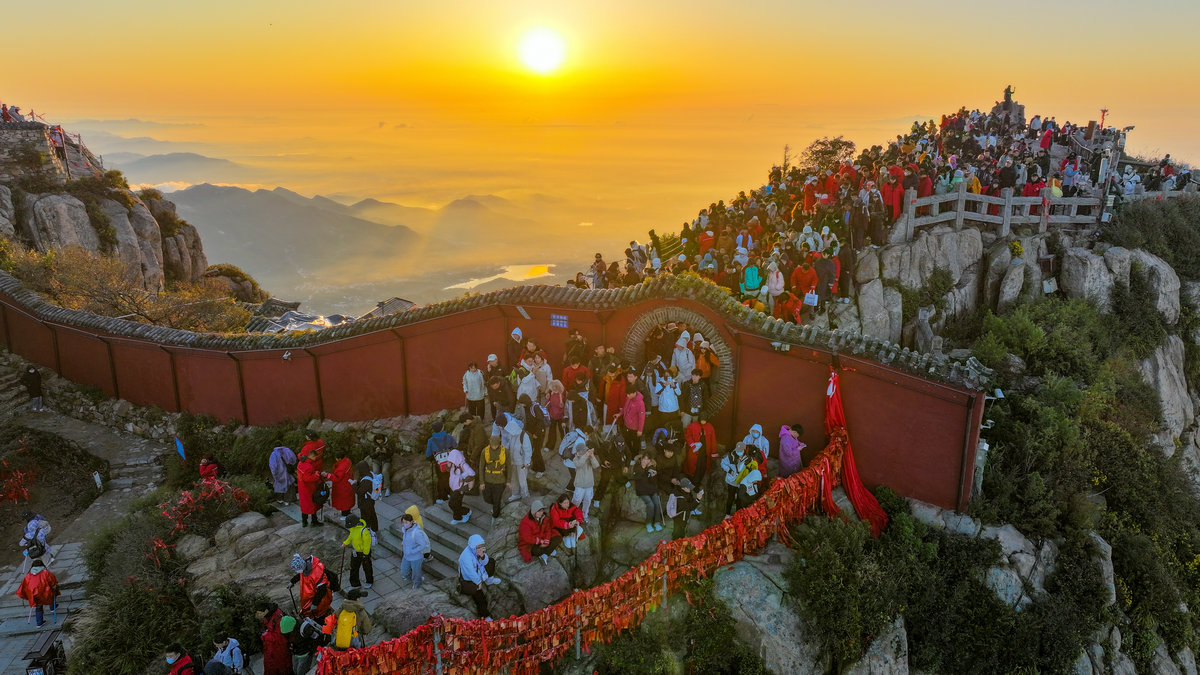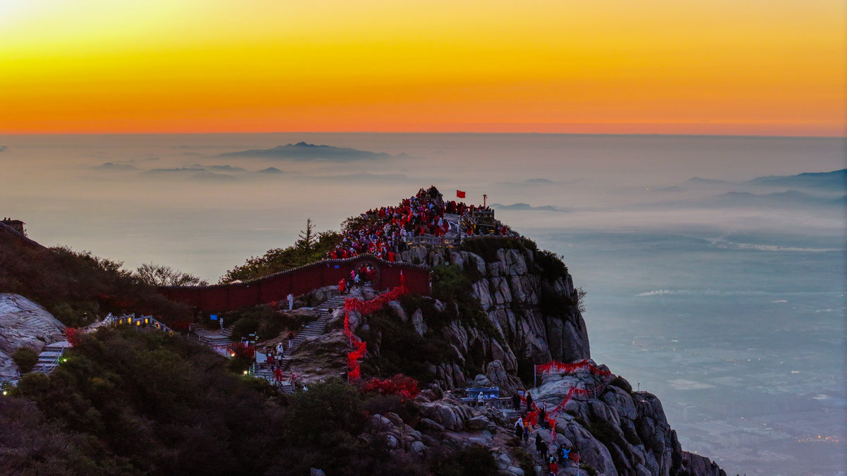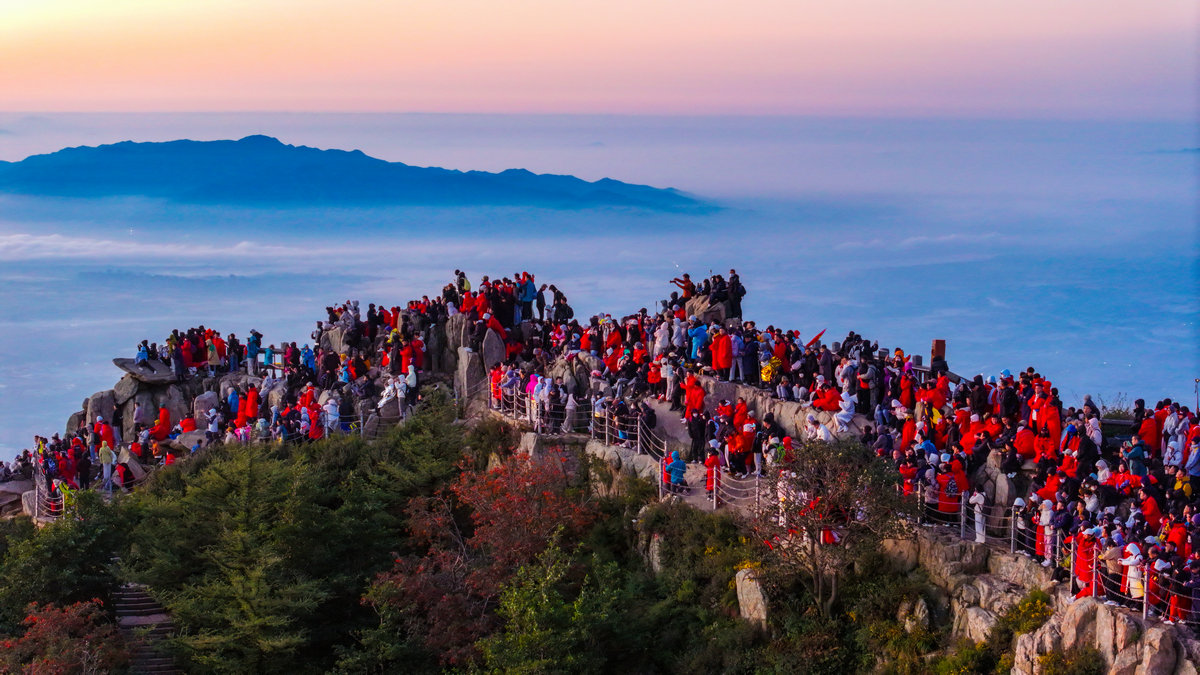 这或许就是泰山最动人的秘密。她让每个攀登者都成为晨光中的朝圣者。那轮每天都会升起的太阳,之所以值得千万人彻夜奔赴,不仅仅因为景色的壮美,更因为等待本身就是一种仪式——在漫长的黑夜中坚持,在刺骨的寒风中相信,在筋疲力尽时依然选择向上攀登。泰山日出从来不只是自然奇观,它是人类用脚步书写的信念之诗。(张子秋/图文)